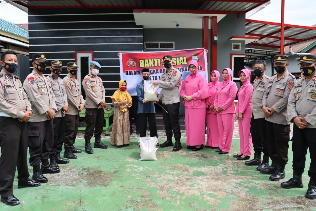 Dalam rangka menyambut Hari Bhayangkara Ke-76, Kapolres Sinjai Akbp Rachmat Sumekar, S.Ik.,M.Si didampingi Ketua Bhayangkari Cabang Sinjai Ny. Ririn Rahmat dan beberapa perwira kembali menggelar kegiatan sosial. Selasa (21/6/22).