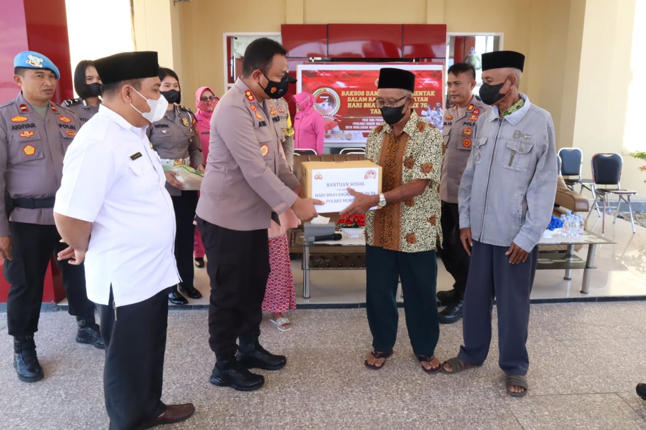 Pada kegiatan tersebut juga Polres Morowali menyalurkan bansos kepada warga masyarakat dan tokoh adat Kabupaten Morowali, secara simbolis diberikan langsung oleh Kapolres Morowali.