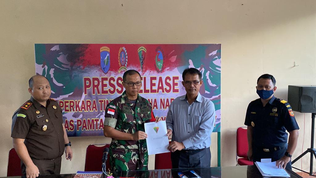 Pada hari Selasa, 21 Juni 2022 pukul 16.00 WIB bertempat di di Makotis Entikong, Kab. Sanggau telah dilaksanakan Press Release Perkara Tindak Pidana Narkotika mengenai penemuan penyelundupan Narkotika dan Penyerahan Barang Bukti Sabu-Sabu seberat 27,333 Kg oleh Dansatgas Letkol Inf Hudallah, S.H. kepada pihak POLDA Kalbar.