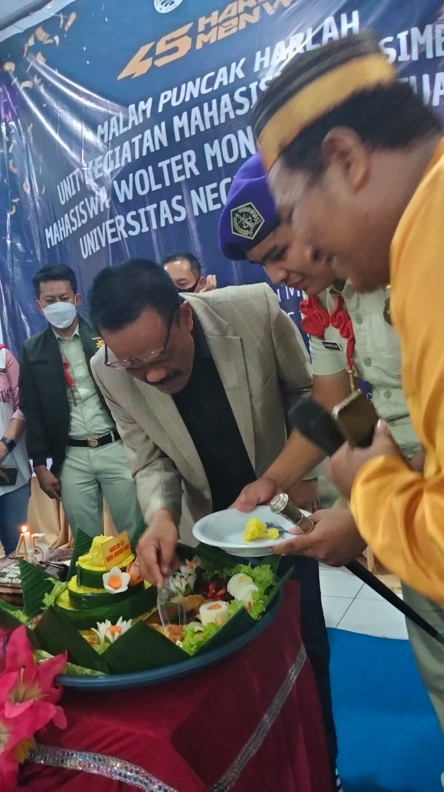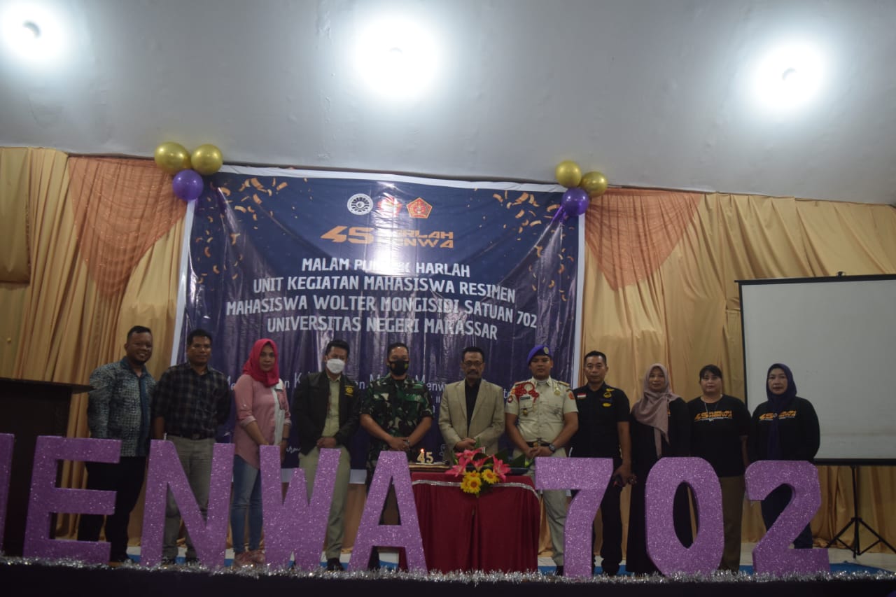 UKM Resimen Mahasiswa (Menwa) Wolter Mongisidi satuan 702 Universitas Negeri Makassar merayakan hari lahir ke- 45 di tahun 2022.
