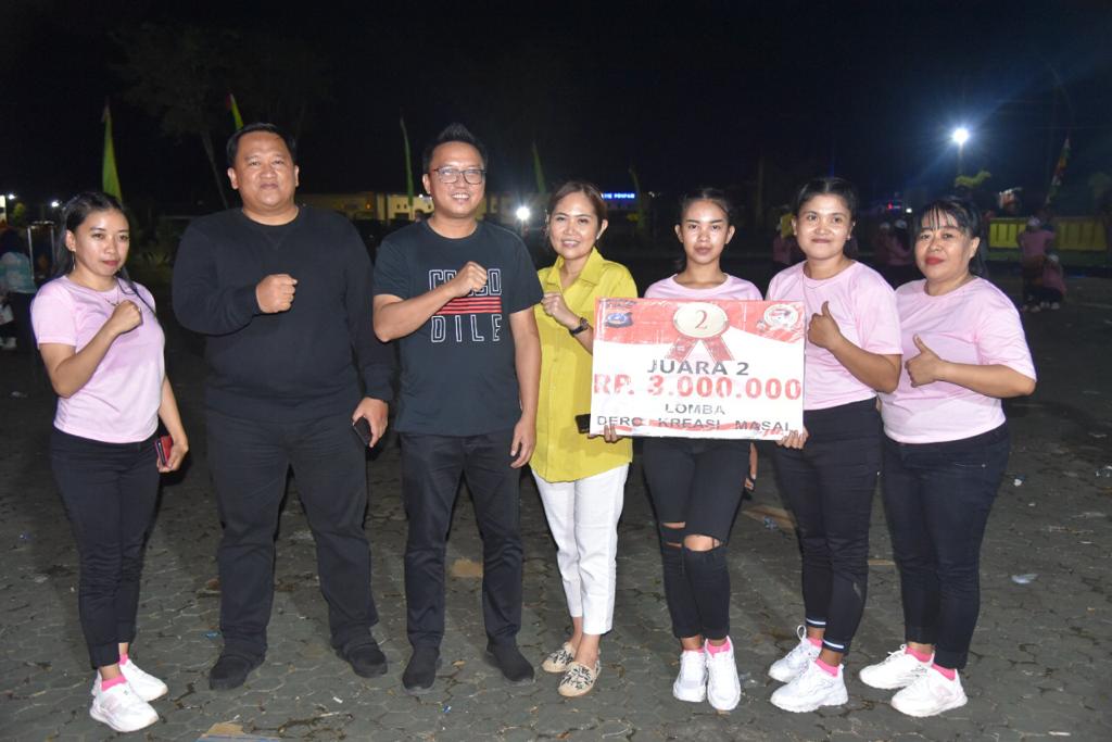 Bagi peserta dengan goyang terheboh. Ada sepuluh orang yang berhak mendapatkan doorprize dari Kapolres Morowali Utara berupa uang tunai sebesar Rp 500.000 dan ditambah dari Bupati Morowali Utara sebesar Rp 300.000. yang diserahkan secara simbolis oleh, Wakapolres Morowali Utara, Ketua penggerak PKK dan Wakil Ketua Bhayangkari Cabang Morowali Utara.
