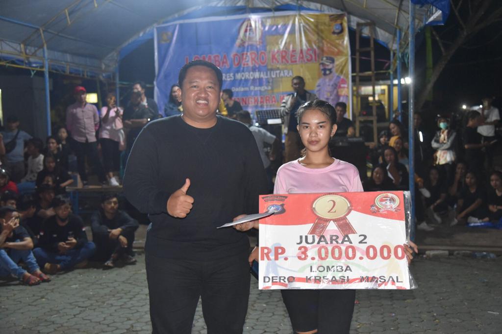 Untuk tim peserta dero kreasi yang menjadi juara pertama Tim Morokopoda Muda dari Desa Lemboroma yang hadiahnya diserahkan oleh Bupati Morowali Utara, juara kedua group Momoiko dari Desa Korowou diserahkan oleh Wakapolres Morowali Utara, juara ketiga, group Bhayangkari yang diserahkan oleh Ketua Penggerak PKK Morowali Utara dan juara ke empat dari Polsek Lembo diserahkan oleh Kasatlantas Polres Morowali Utara. Selain mendapatkan hadiah utama, para pemenang juga mendapatkan tambahan hadiah dari Bupati Morowali Utara Dr dr Delis Julkarson Hehi Mars.
