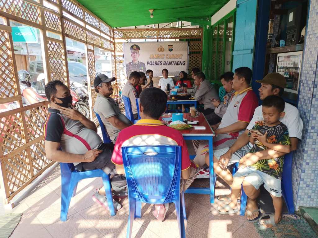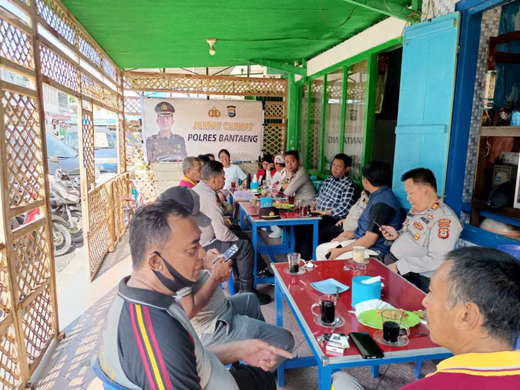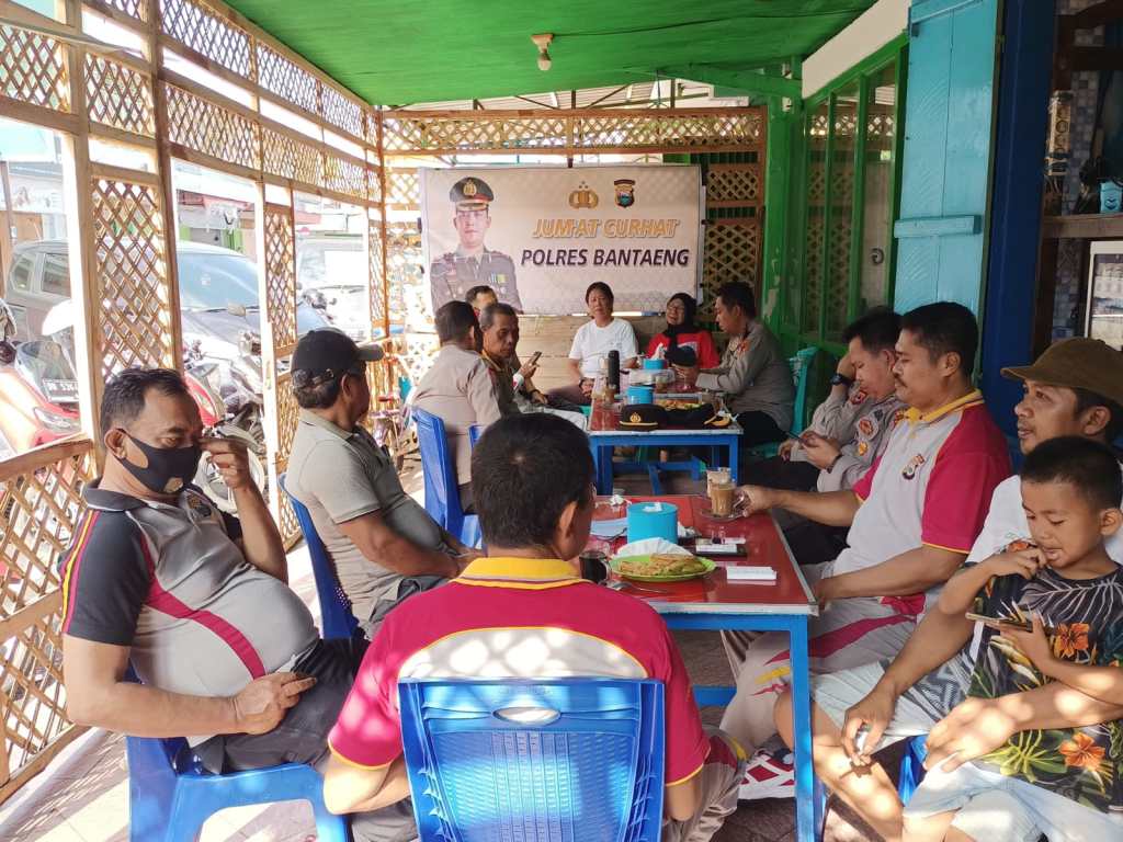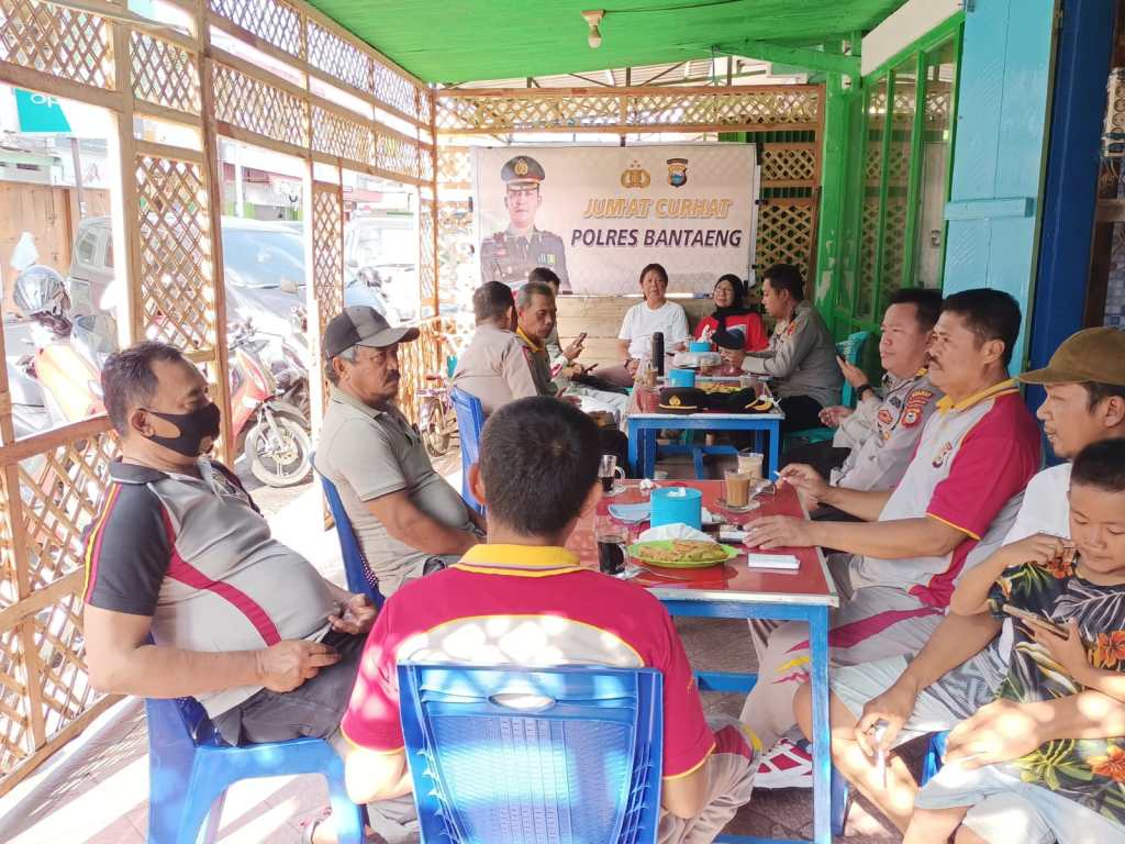 Polres Bantaeng gelar kegiatan Program “Jumat Curhat” bertempat di warung kopi Dg Nai di jln Manggis Kab. Bantaeng, Jumat (06/01/2023)