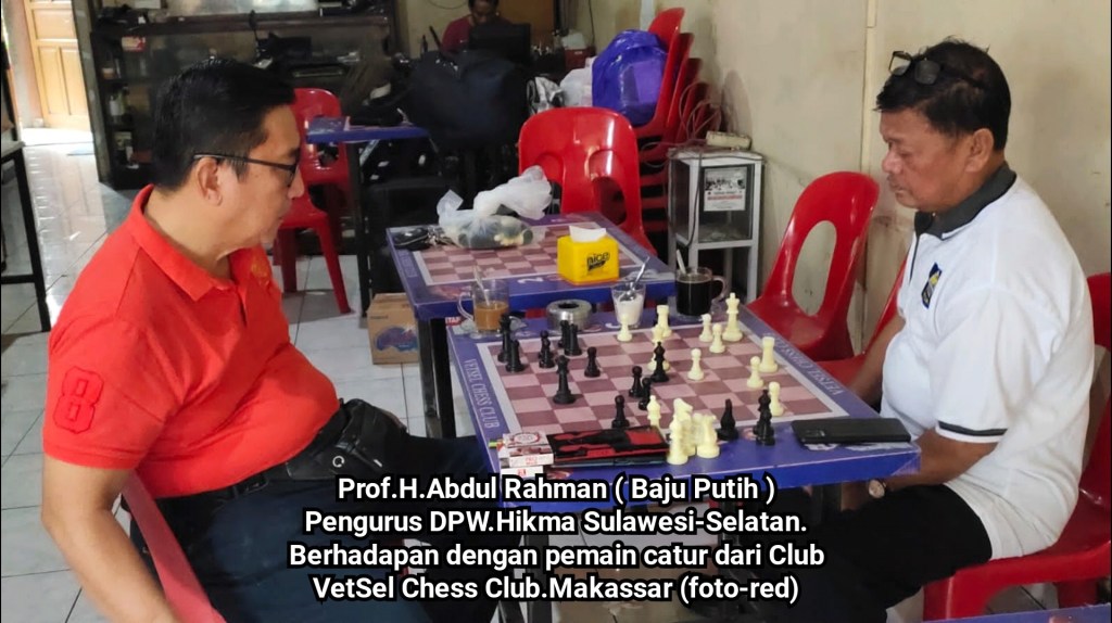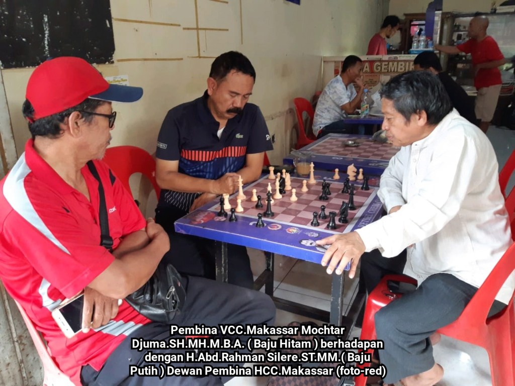 Pembina Club VCC.Makassar Mochtar Djuma.SH.MH.M.B.A. ikut ambil bahagian pada pertandingan persahabatan itu berhadapan dengan H.Abd.Rahman Silere.ST.MM Dewan Pembina Club Hikma Chess Club Makassar.