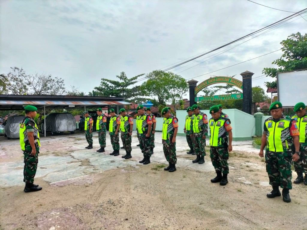 Danramil 1016-06/Kurun, Kapten Inf Juni Wijaya melaksanakan apel Kesiapsiagaan pengecekan kepada Personel Koramil Jajaran Gumas guna membantu Polres setempat mengantisipasi perkembangan situasi (Bangsit) unjuk rasa yang akan dilaksanakan di halaman kantor DPRD Gumas.