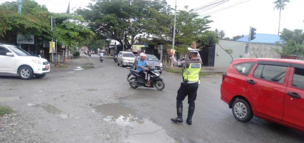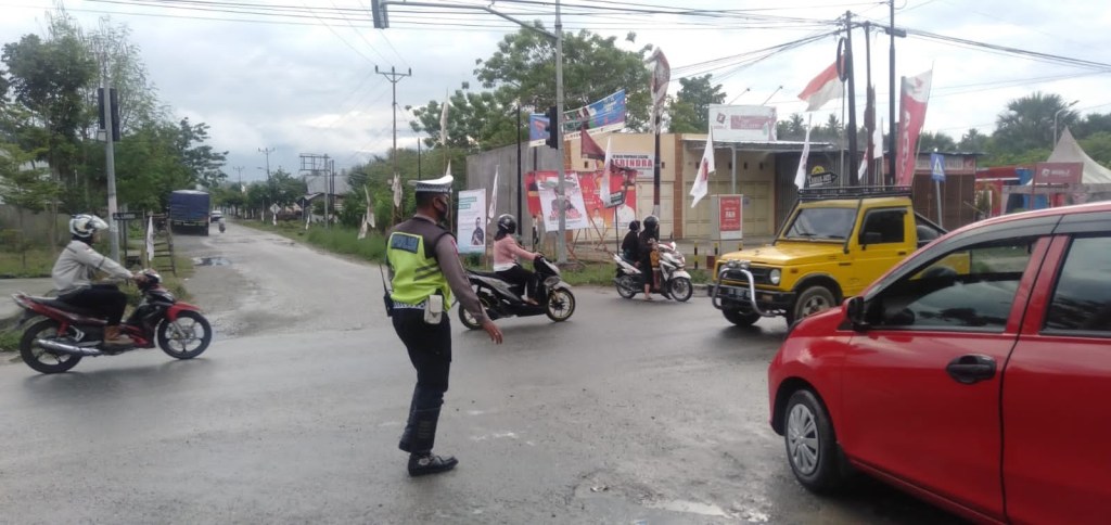 Saat di temuai KBO Lantas Ipda Sunardi menerangkan “bahwa Kegiatan tersebut dilaksanakan dalam rangka untuk menciptakan sitkamtibmas yang kondusif dan kelancaran berlalu lintas di area persimpangan yang padat akan kendaraan , sekaligus memberi himbauan kepada masyarakat untuk selalu mematuhi protokol kesehatan, melengkapi diri dengan standar keselamatan dalam berlalu lintas utamanya dalam penggunaan helm” Ucapnya.