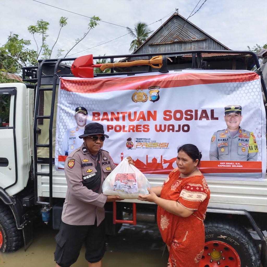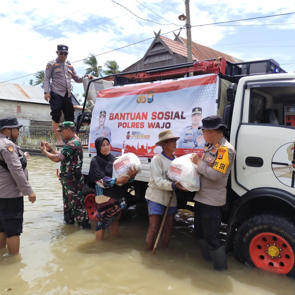 Kepolisian Resor ( Polres ) Wajo sigap membagikan bantuan Kapolda Sulsel sejumlah 500 paket sembako kepada warga korban bencana alam, banjir dan anging puting beliung di beberapa kecamatan di wilayah hukum Polres Wajo.