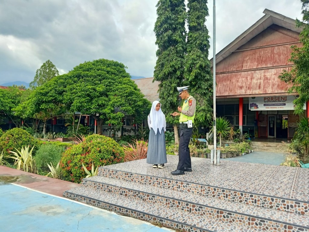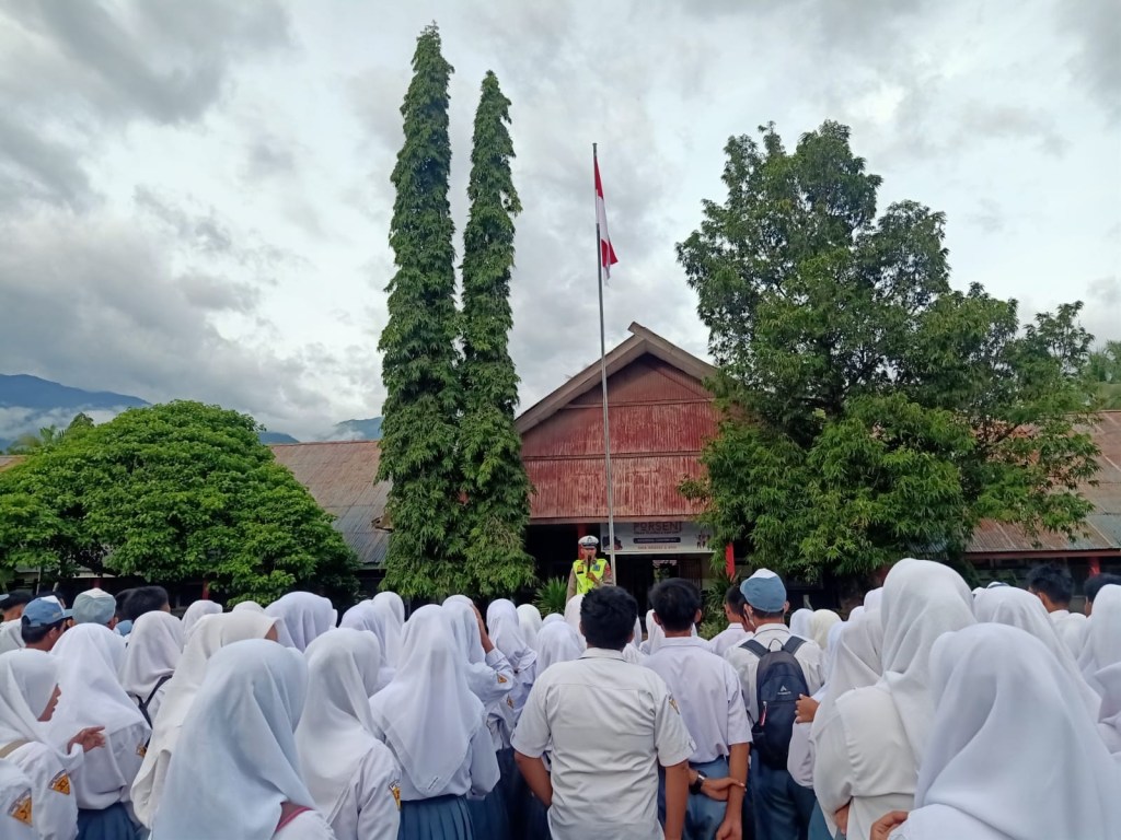 Himbauan Tertib Berlalu lintas serta mengajak Siswa & Siswi SMA 2 Sigi Untuk tetap Menggunakan Masker Saat Beraktifitas.