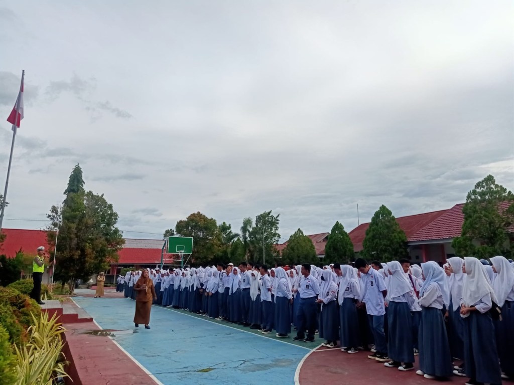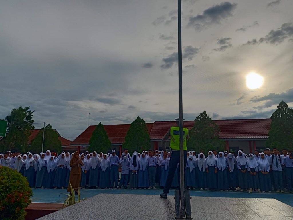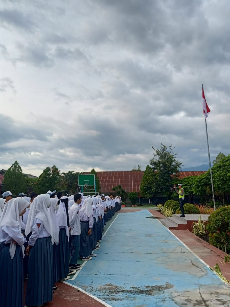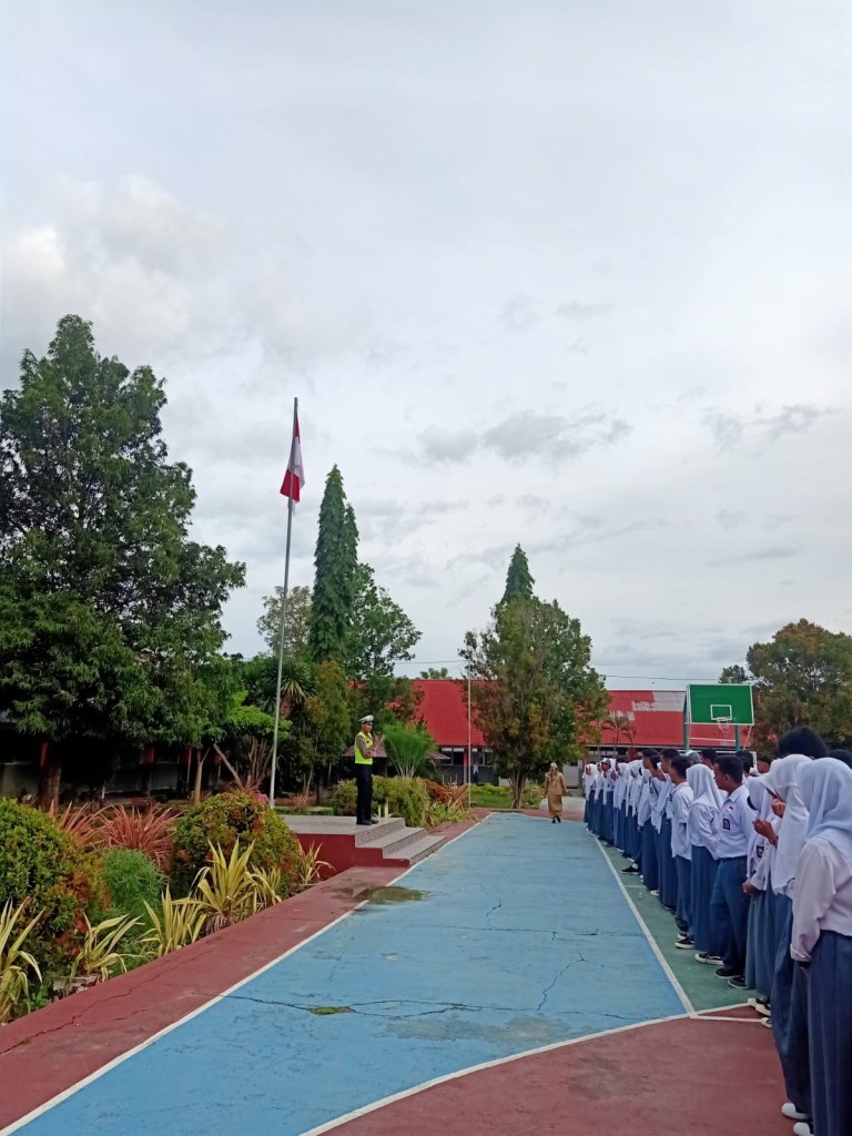 Melaksanakan himbauan kepada Siswa/wi untuk tetap Mematuhi Aturan Berlalu lintas guna menekan angka kecelakaan yang berakibat fatal guna terciptanya Kamseltibcar Lantas serta selalu Mematuhi Protokol Kesehatan.