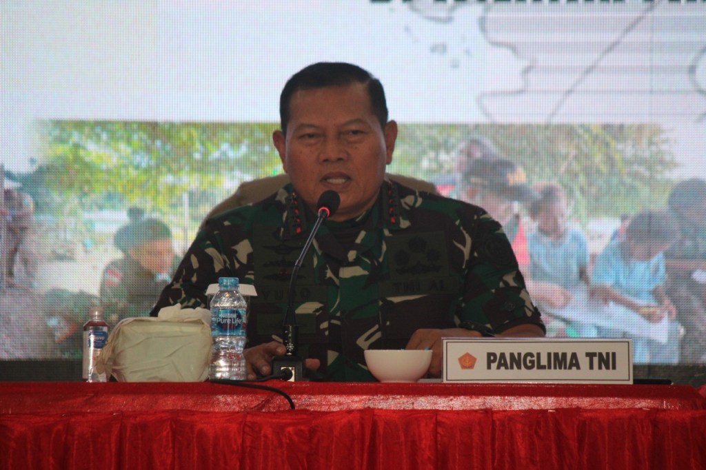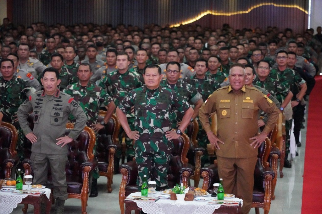 “Kalau masih ada gerombolan yang mengacau kehidupan, masa depan masyarakat dan Pemerintahan,kalian yang harus maju menyelesaikan dan tidak boleh takut untuk itu, karena ini adalah penegakan hukum. Tentunya saya sebagai panglima TNI dan Kapolri akan memberikan payung hukum supaya kalian tidak ragu-ragu dalam melaksanakan tugas. Pembinaan territorial, komunikasi sosial dengan masyarakat juga harus dikedepankan serta budaya harus dihormati, kearifan lokal masyarakat Papua juga harus dipahami,” ucapnya.