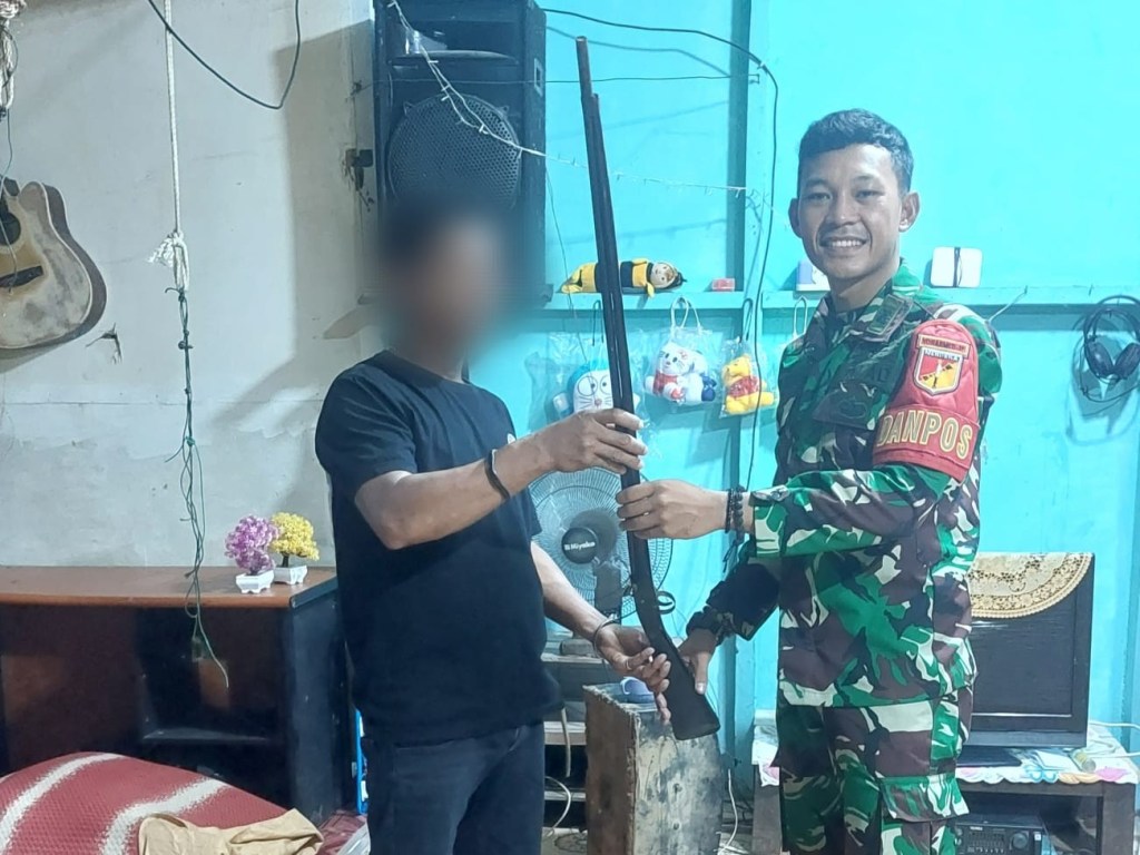 “Ini adalah langkah yang dilakukan oleh satgas dalam menjaga keamanan diwilayah binaannya, dalam mengantisipasi terjadinya hal-hal yang tidak diinginkan dari penyalahgunaan senjata api, penyerahan senpi rakitan tersebut langsung di serahkan pemiliknya kepada Danpos Perumbang dan Danpos Semareh.” Ujar Dansatgas.