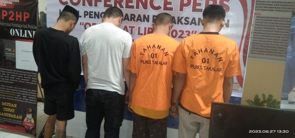 “Untuk mempertanggung jawabkan perbuatannya, Keempat Tersangka terancam dengan pasal 363 ayat 1 KUHPidana dengan ancaman hukuman maksimal 7 tahun penjara sementara tersangka Pencurian dan pemberatan terancam Pasal 363 ayat 2 Jo Pasal 64 KUHPidana dengan ancaman hukuman maksimal 9 tahun penjara,” pungkas AKBP Gotam Hidayat.