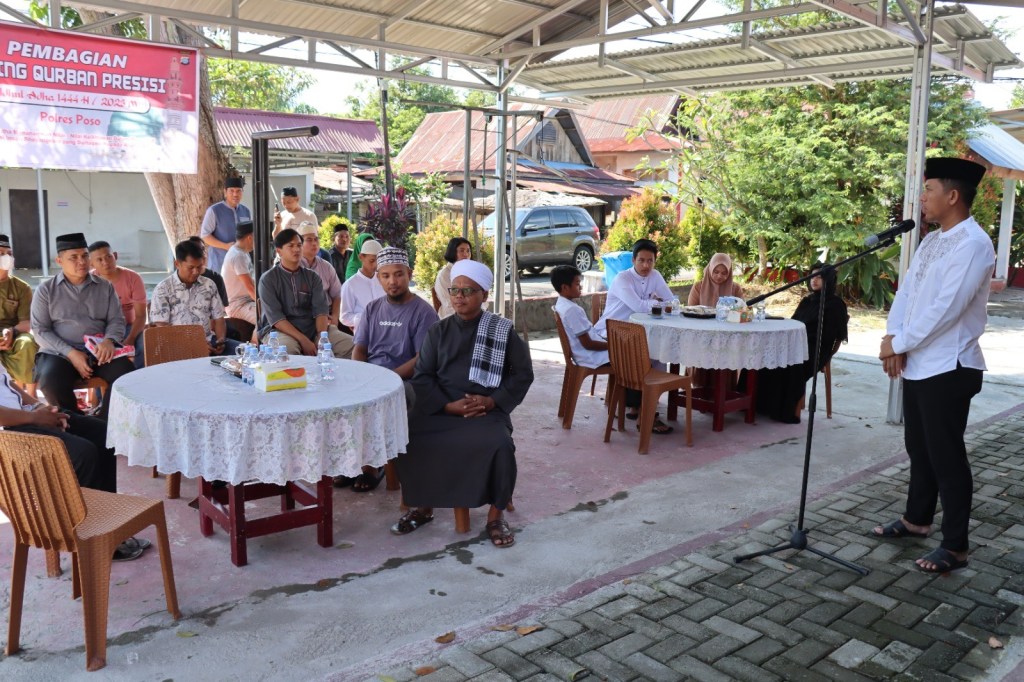 Kegiatan tersebut diawali dengan penyerahan hewan qurban oleh Kapolres Poso AKBP Riski Fara Sandhy, S.I.K.,M.I.K. kepada panitia qurban yang bertanggung jawab atas proses pemotongan,Kegiatan ini dihadiri oleh para Pejabat Utama Polres Poso bersaama Ibu Ketua Bhayangkari Cabang Poso Ny.Fenny Riski Fara dan perwakilan masyarakat.