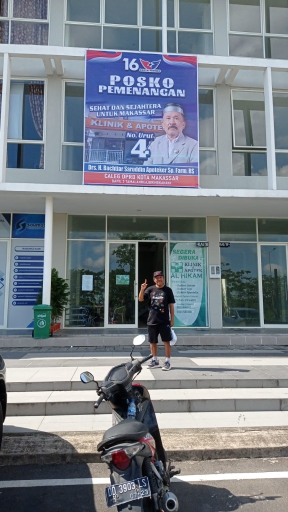Dua Posko Induk pemenangan Drs. H. Bachtiar Saharuddin berdiri megah di bilangan Poros BTP Blok AE dan Kompleks Ruko Citraland Tallasa City, dalam keterangan Pers H. Bachtiar kepada awak, diam menyampaikan bahwa untuk kontestasi Pileg 2024 dia siap lahir bathin”
