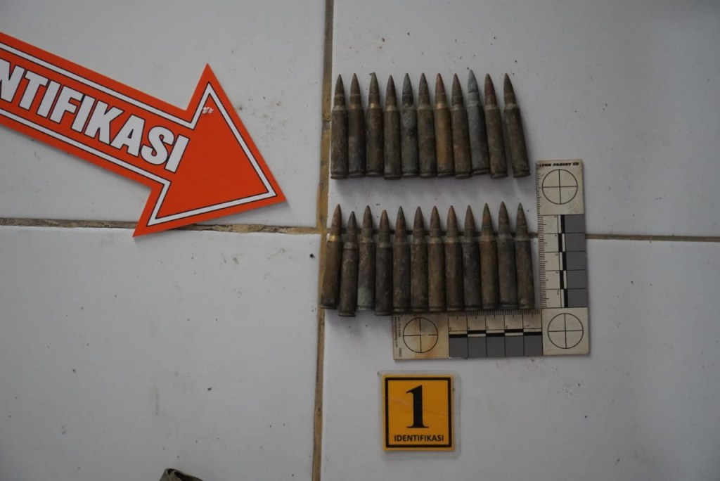 Tak lama kemudian datang anggota Polsek Kanit Intelkam Aipda Misfan Kamal langsung melakukan pengecekan terhadap laporan masyarakat tersebut dan memeriksa ternyata memang benar sejumlah amunisi dan kemudian mengamankan barang bukti tersebut ke Mapolsek.