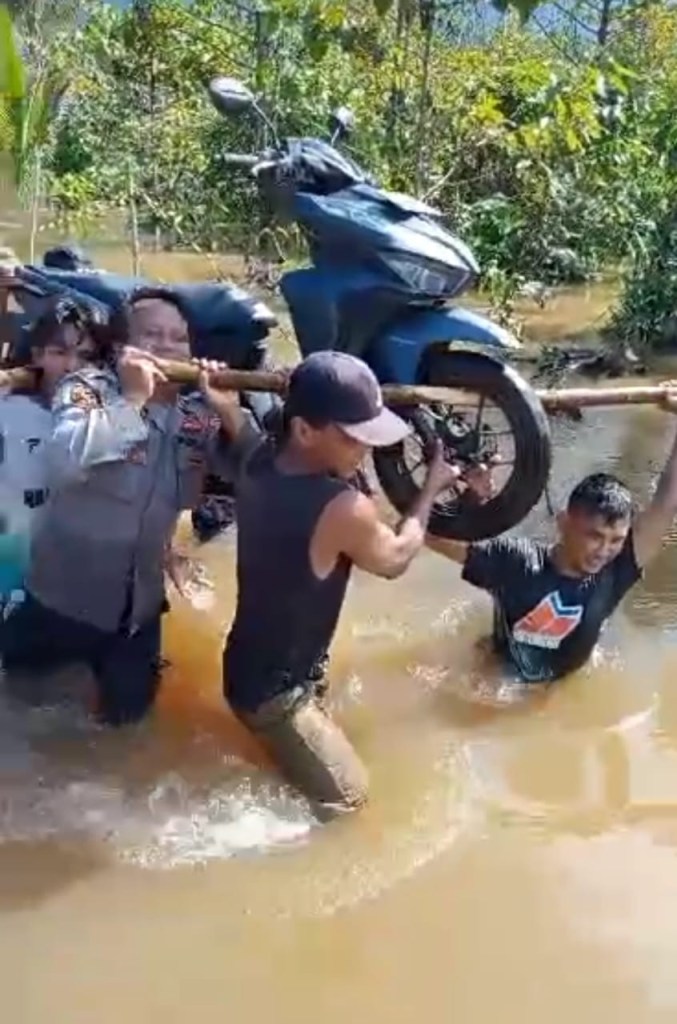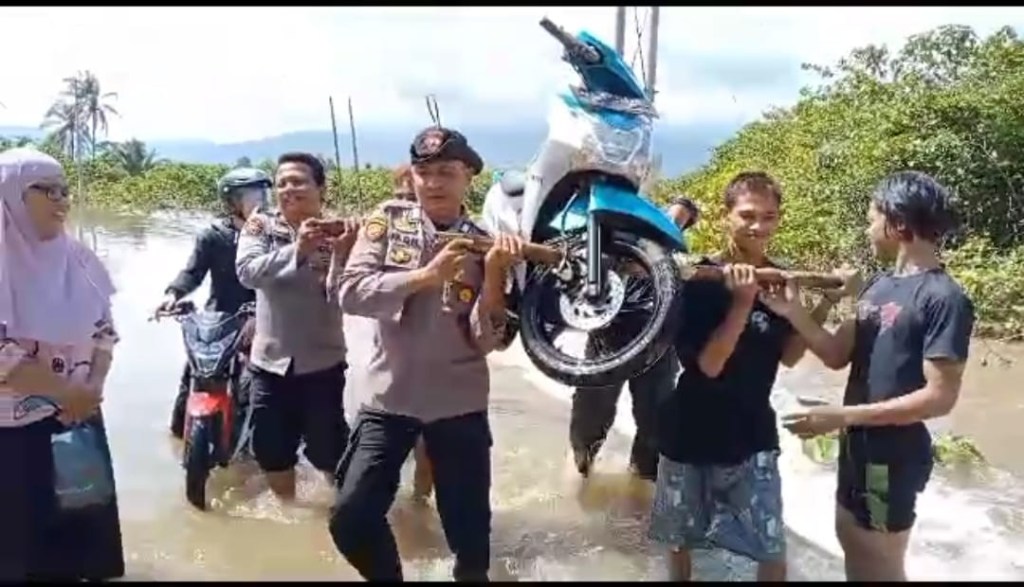“Dari informasi dan data terkait banjir yang melanda kedua kecamatan tersebut diketahui terdapat dua Desa di Kecamatan Soyo Jaya yang terendam banjir hingga setinggi lutut orang dewasa yaitu Desa Lembah Sumara dan Kalombang, khususnya di Jalan Trans Sulawesi Desa Lembah Sumara banjir menutup akses jalan sehingga kendaraan khususnya R2 yang ingin melintas harus diangkat dan dipikul warga yang dibantu personel Polsek Soyo Jaya dan personel TNI dengan menggunakan alat seadanya, terdapat 21 KK yang rumahnya terendam banjir, untuk korban jiwa nihil dan korban material /harta benda belum dapat dihitung, ” jelas AKBP Imam Wijayanto.S.I.K., M.H.(9/7/2023)