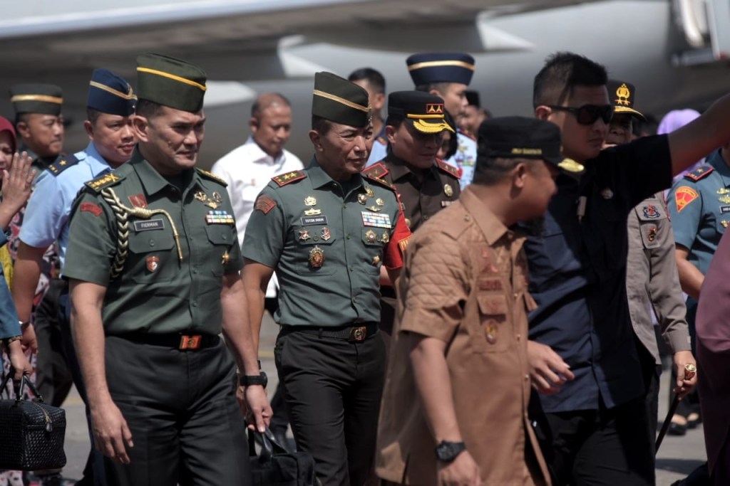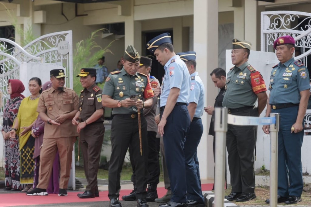 Tiba di Kota Daeng, Pangdam XIV/Hasanuddiin Mayjen TNI Dr. Totok Imam Santoso, S.I.P., S.Sos., M.Tr (Han)., menyambut kedatangan Wakil Presiden RI Prof. Dr.(H.C). K.H. Ma’ruf Amin didampingi Ibu Hj. Wury Mar’uf Amin beserta rombongan di Bandara Emmy Saelan Lanud Sultan Hasanuddin, Kab. Maros. Selasa (11/07/2023).
