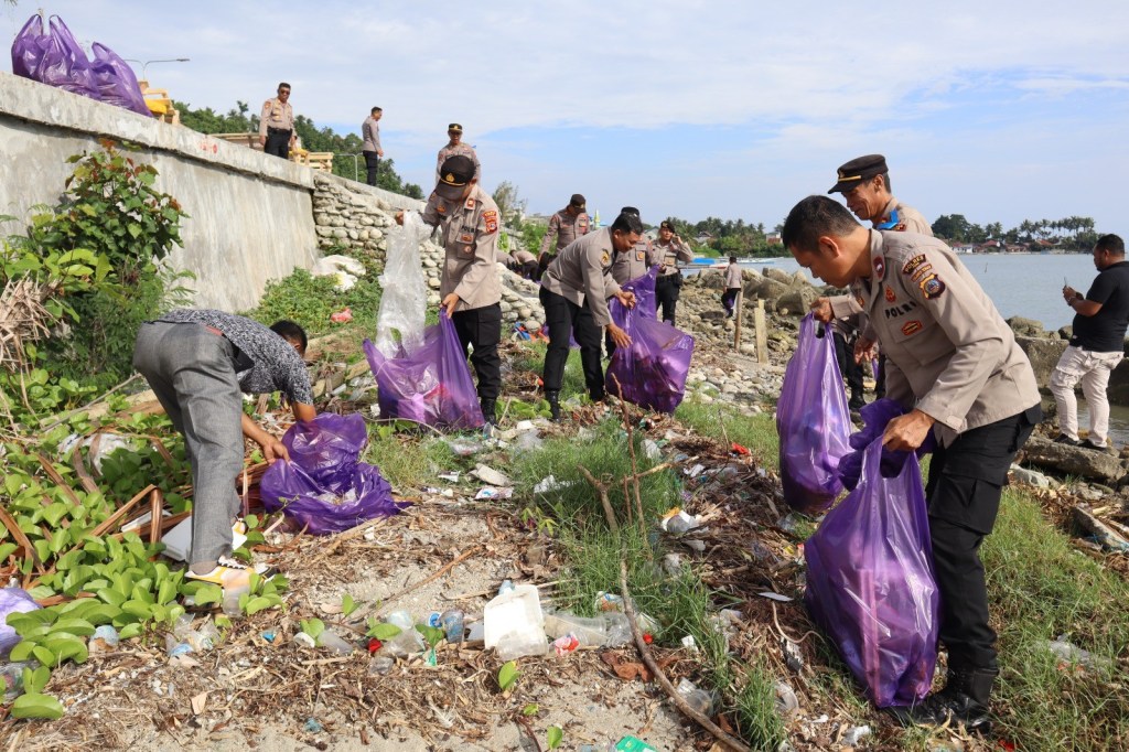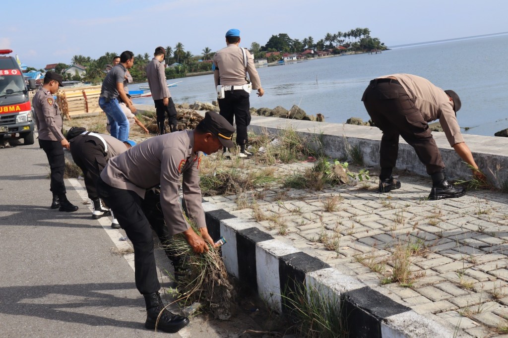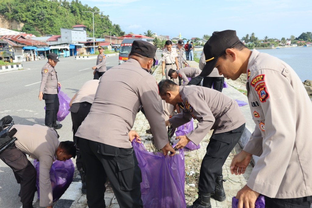 Polres Poso bekerja sama dengan masyarakat setempat melaksanakan kegiatan peduli lingkungan dengan membersihkan sampah secara serentak di area pantai Kabose, Kelurahan Kayamaanya.