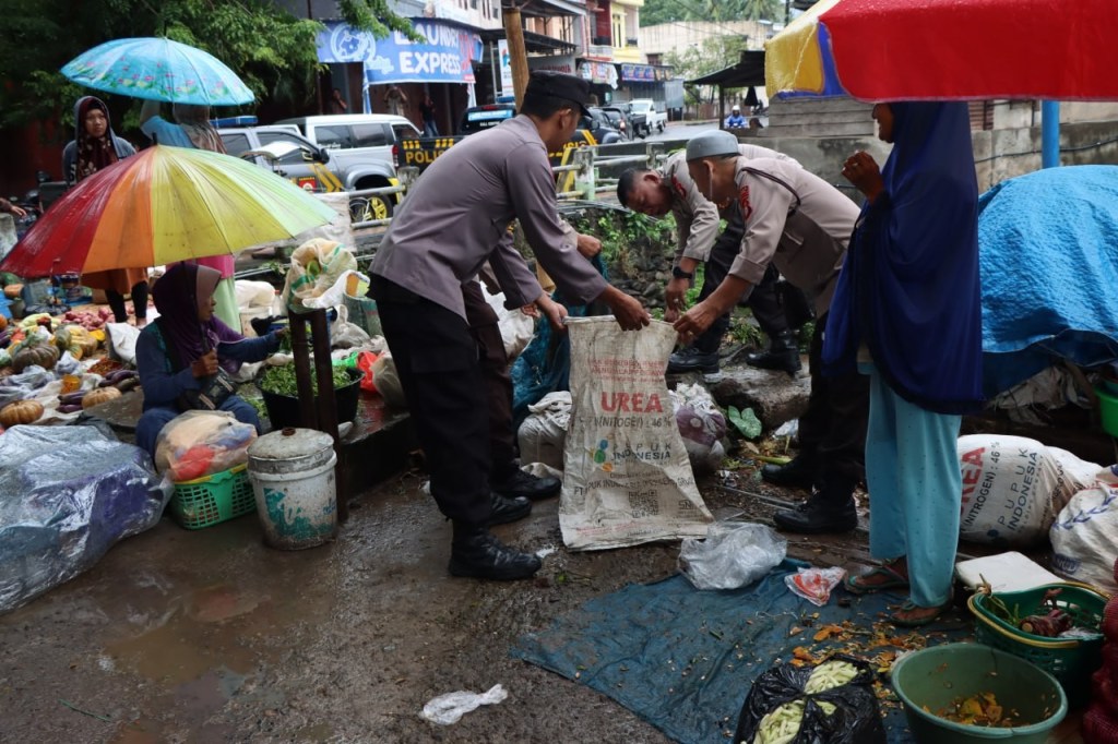 “Kita harus melakukan pencegahan dini dari bencana dengan cara membuang sampah-sampah serta membersihkan sampah yang ada di sekitar pasar dan pinggiran sungai,” ujar Wakapolres.
