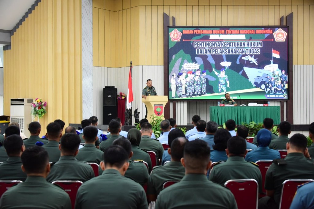 Kegiatan penyuluhan ini, disampaikan langsung oleh Tim Badan Pembinaan Hukum (Babinkum) TNI, pimpinan Kabidluhkum Babinkum TNI Kolonel Chk Fika Budhiana MJP., S.E., S.H., M.H., CRMP., diikuti oleh personel gabungan prajurit dan Aparatur Sipil Negara (ASN) Kodam XIV/Hasanuddin, Lantamal VI/Makassar dan Lanud Sultan Hasanuddin.
