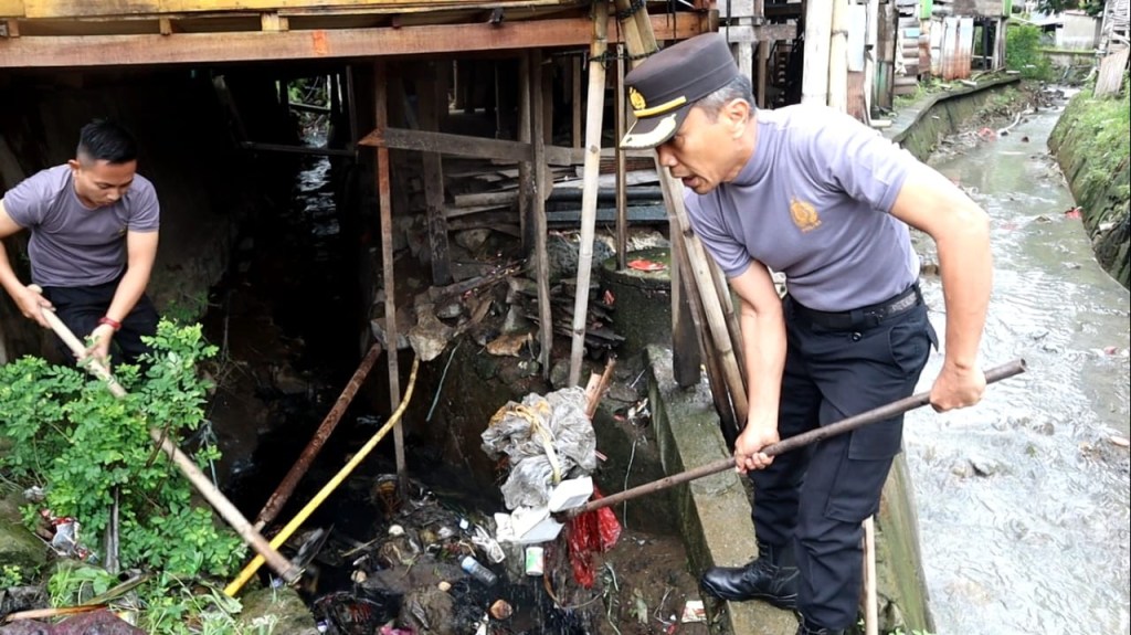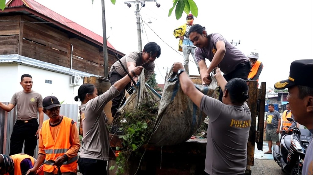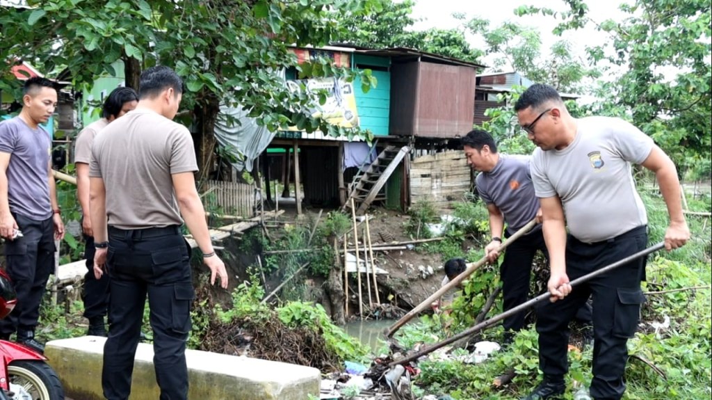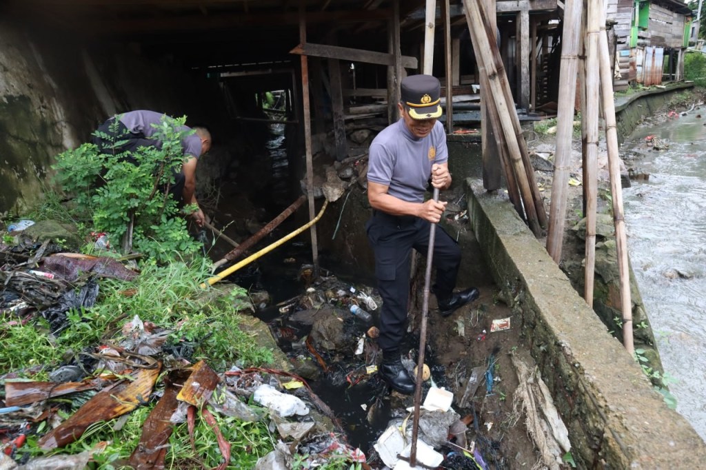 Bertempat di Jl. K.H. Yunus Maratang Kel. Siengkang Kec. Tempe Kab. Wajo Personil Polres Wajo bersama dengan Aparat pemerintah kelurahan dan masyarakat melaksanakan kerja bakti dengan sasaran tumpukan sampah yang menghalangi aliran air menuju ke sungai untuk mengantisipasi terjadinya banjir.