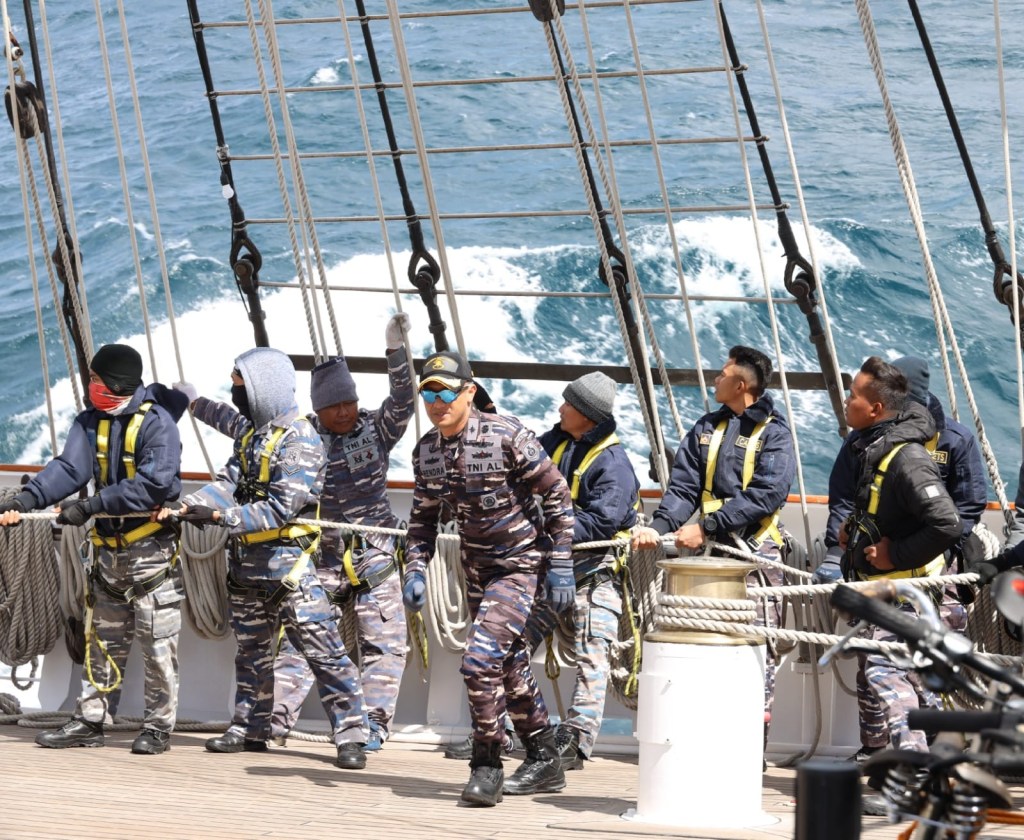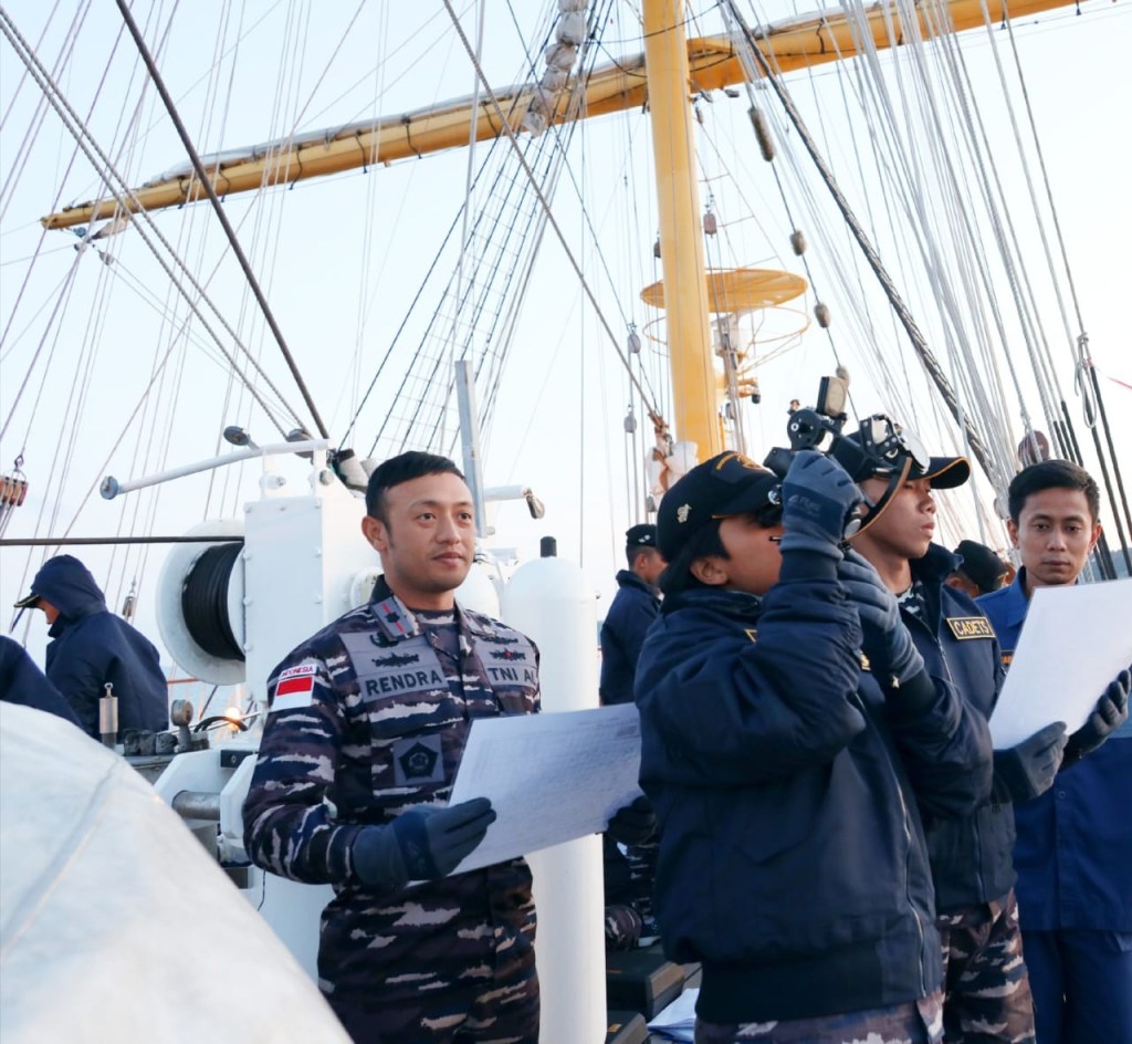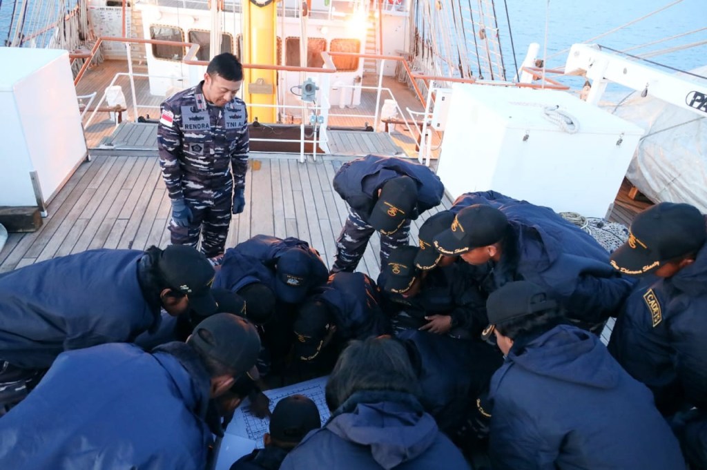 Satlat KJK 2023 Taruna Akademi Angkatan Laut Angkatan 70 di KRI Bimasuci dengan Palaklat Mayor Laut (P) Rendra Hariwibowo melaksanakan Praktek Navigasi Astronomi.