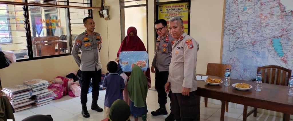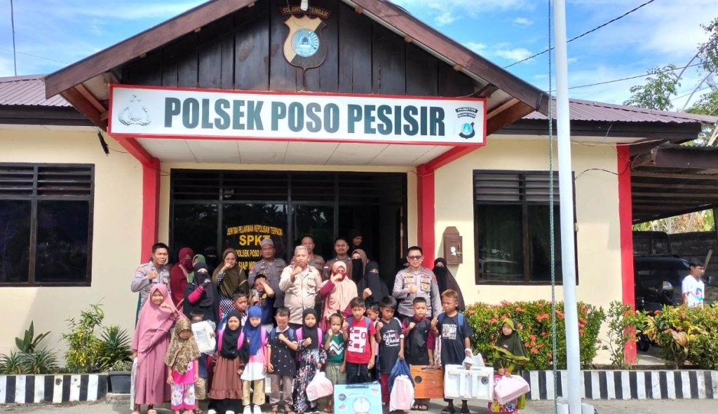 Kegiatan pemberian bantuan kelengkapan sekolah bagi anak-anak yang terdampak operasi penegakkan hukum dilaksanakan di Mako Polsek Poso Pesisir.