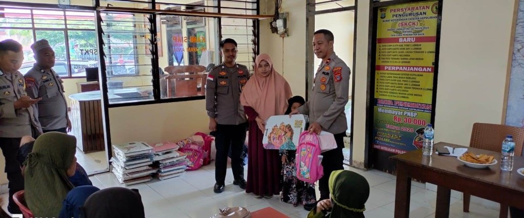 Kegiatan pemberian bantuan kelengkapan sekolah bagi anak-anak yang terdampak operasi penegakkan hukum dilaksanakan di Mako Polsek Poso Pesisir.