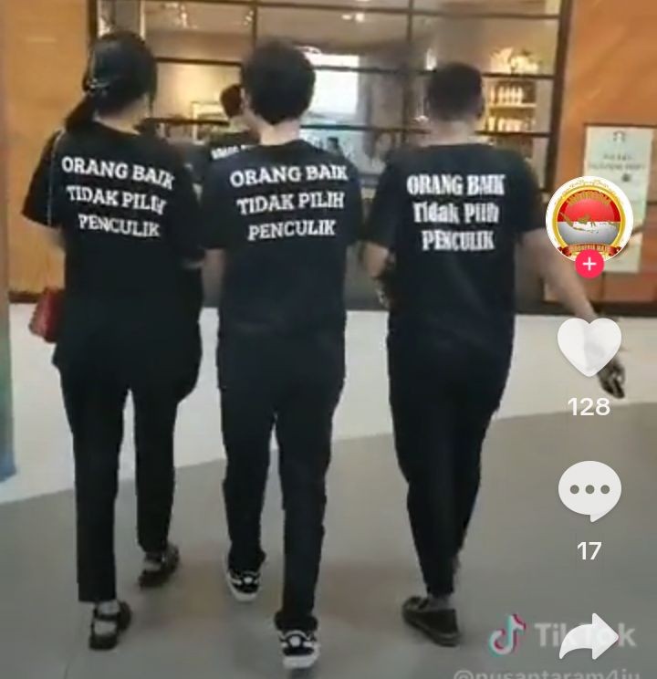 Gaya jalan mereka cuek, gembira, tertawa tawa sama seperti rata rata anak muda saat ini. Tapi yang luar biasa adalah tulisan di kaos hitam mereka yang membuat kami aktivis 98 terhenyak, merinding dan menahan air mata. Tulisan nya adalah “ORANG BAIK TIDAK PILIH PENCULIK”