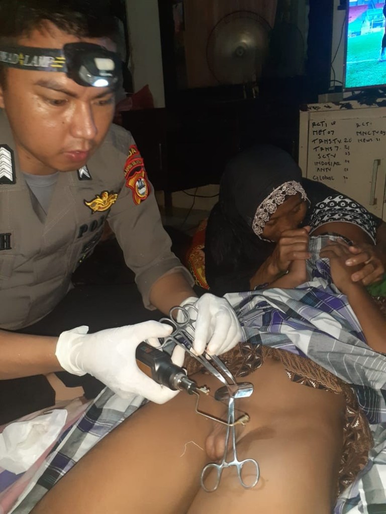 Bripka Amirullah.H., Amd.Kep Personil Uryankes Subbid Kespol Biddokkes Polda Sulsel memberikan Pelayanan Sunat Gratis kepada masyarakat kurang mampu dan anak yatim dengan metode terbaru yaitu sunat tanpa suntik, sunat tanpa jahit dan sunat tanpa verban.