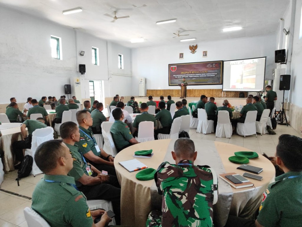 Rapat evaluasi ini mengangkat tema “Aparat Teritorial Yang Profesional Mewujudkan Kemanunggalan TNI Rakyat Guna Mendukung Pembangunan Nasional”. Merupakan suatu upaya peningkatan kualitas program guna memberikan informasi dan program yang dilaksanakan sehingga dapat mengoptimalkan pencapaian sasaran yang ditentukan.