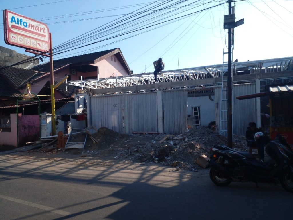 Bangunan mini market Alfa mart yang berhadapan gedung Rumah sakit Gigi dan mulut Unhas di jalan kandea raya Kelurahan Baraya Kecamatan Bontoala Kota Makassar nampak di renovasi, terlihat beberapa orang pekerja sedang membongkar bagian tertentu dari bangunan tersebut.