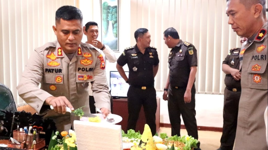 Kapolres bersama rombongan dalam kegiatan tersebut juga melakukan surprise pemberian tumpeng kepada Kajari Wajo.