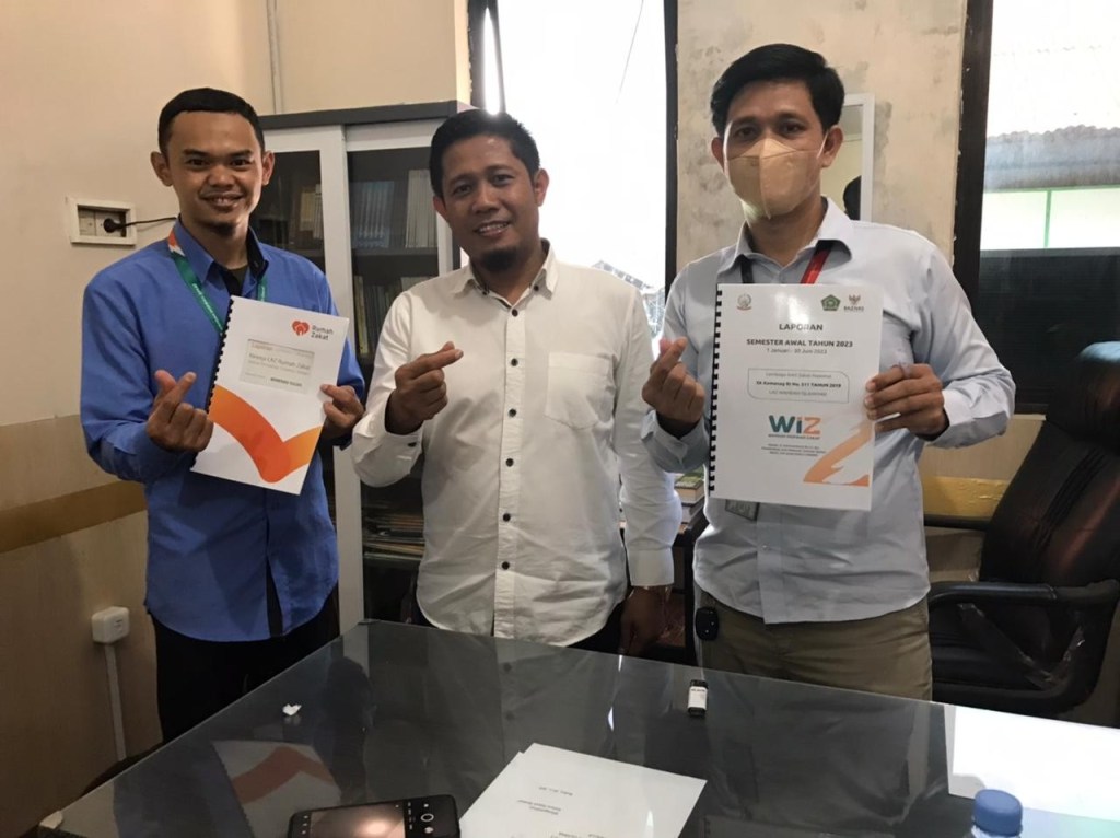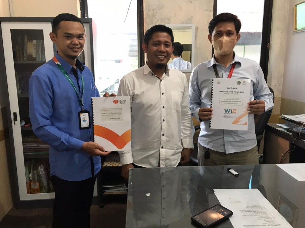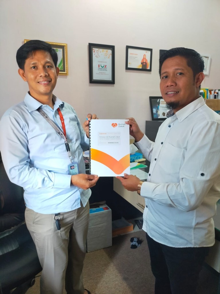 Rumah Zakat Sulawesi Selatan (Sulsel) menyerahkan Laporan Kinerja Semester 1 Tahun 2023, kepada Kementerian Agama Provinsi Sulawesi Selatan, Senin, 24 Juli 2023.