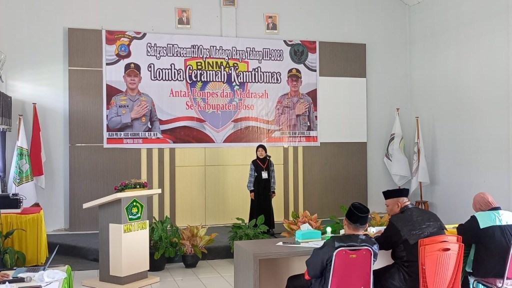 Dalam menciptakan situasi Kamtibmas diwilayah kabupaten Poso, Satgas II Preemtif Ops Madago Raya bersama tim Da’i Polri menyelenggarakan Kegiatan Lomba Ceramah Kamtibmas antar Pondok Pesantren dan Madrasah se-Kabupaten Poso di MTSN 1 Poso Pesisir Rabu ( 26/7/2023)