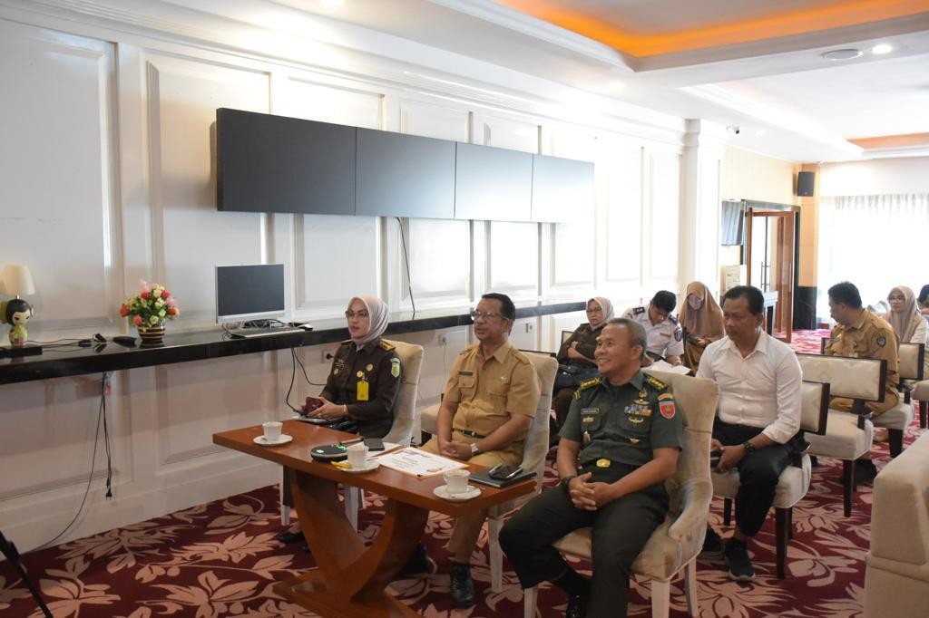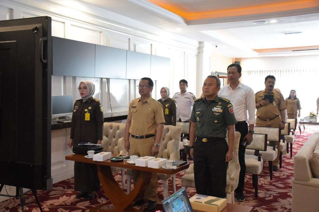 Wakili Pangdam XIV/Hasanuddin, Pamen Ahli Bidang Ideologi dan Politik Poksahli Pangdam, Kolonel Inf Fajar Nugraha mengikuti Rapat Koordinasi (Rakor) Pengendalian Inflasi Daerah secara virtual, bertempat di Kantor Gubernur Sulsel, Kota Makassar. Senin (31/07/2023).