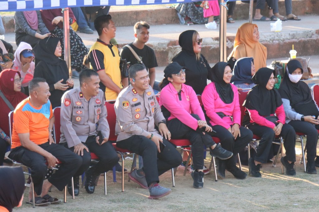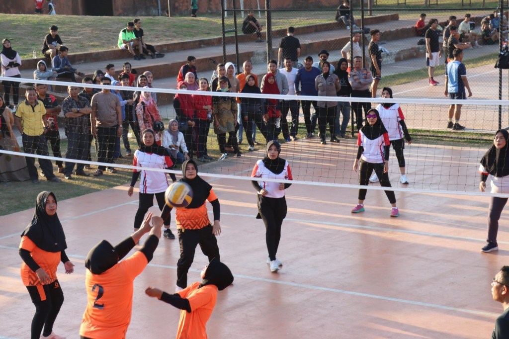 Kapolres Gowa AKBP R.T.S Simanjuntak, beserta Ketua Bhayangkari Cabang Gowa, Ny.Lidya Reonald, memeriahkan acara Final Bola Volli dalam rangka merayakan Hari Ulang Tahun HKGB ke-71. Acara ini digelar di Lapangan Olahraga Syekh Yusuf Kabupaten Gowa, Kamis (03/08/2023) Sore.