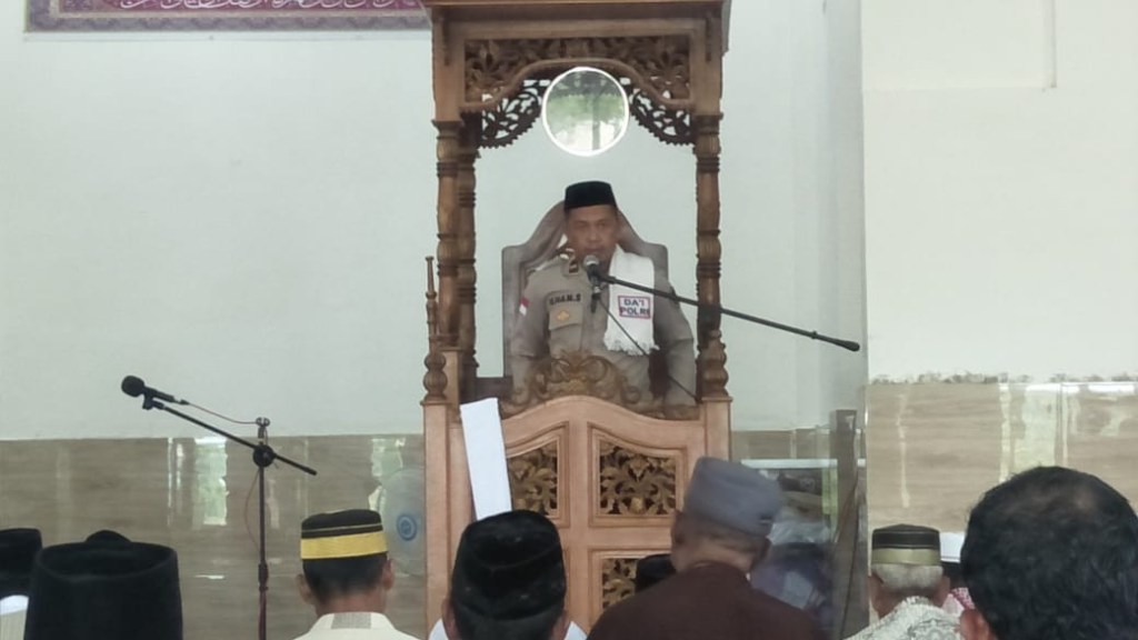 Ipda Ilham Sriwan,SH bertindak selaku Khatib pada sholat Jumat kali ini dengan mengambil tema antara lain yakni keistimewaan 10 Muharam 1445 H dan Menanamkan Toleransi.
