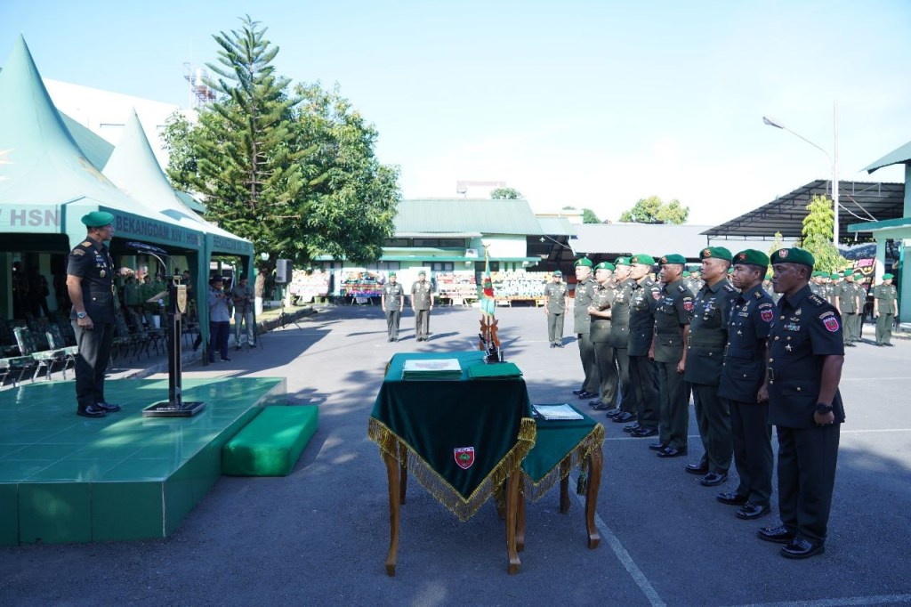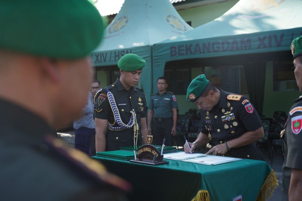 Para PJU Kodam yang berahli tugas yakni, Kakesdam XIV/Hsn Kolonel Ckm dr. Adhy Sugih Arto, Sp.An., kepada pejabat baru Kolonel Ckm dr. Masri Sihombing, Sp.OT., M.Kes., Kainfolahtadam XIV/Hsn Kolonel Inf Drs. Sahabuddin kepada pejabat baru Kolonel Inf Rafiudin Hanafi, Kabekangdam XIV/Hsn Kolonel Cba Trijoko Sulistio, S.E., kepada pejabat baru Kolonel Cba V. Fancy Dwi Cristanto, S.Sos., M.Si., dan Dandim 1408/Makassar Kolonel Inf Nurman Syahreda, S.E., kepada pejabat baru Letkol Inf Lizardo Gumay, S.H., M.M., M.I.Pol.