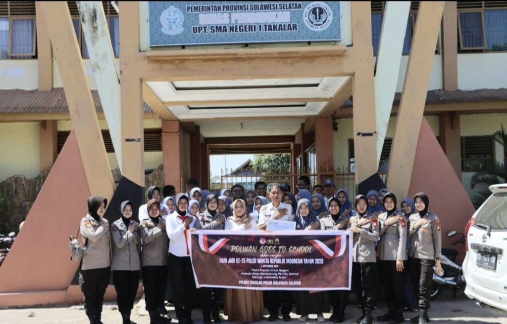 Salah satu kegiatan dalam rangka memperingati Hari Jadi ke-75 Polisi Wanita Republik Indonesia (Polwan RI), Polres Takalar menggelar kegiatan rutin tahunan yang dikenal dengan “Polwan Goes To School” yang diselenggarakan di SMA Negeri 1 Takalar, pada Rabu (09/08/23) pagi.