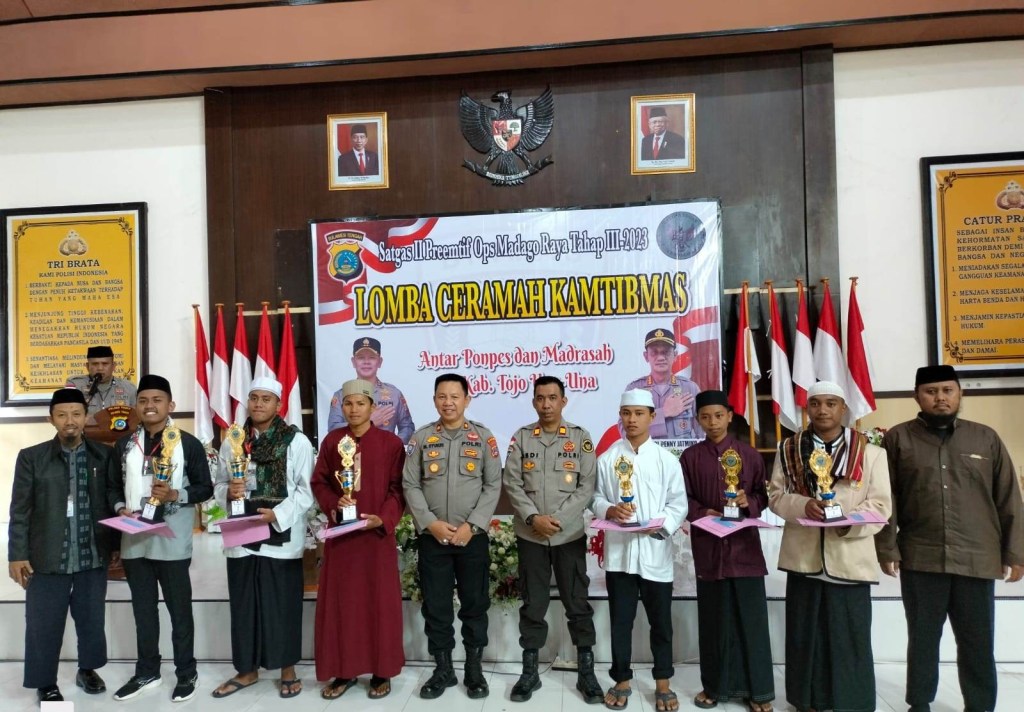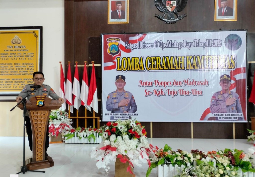 Lomba Ceramah Kamtibmas antar Pondok Pesantren dan Madrasah Se Kabupaten Tojo Una-una di buka oleh Kaops Madago Raya Kombes Pol.Denny Jatmiko,S.I.K yang diwakili oleh Pamen Satgas II Preemtif Kompol Mat Syukri,S.Sos.