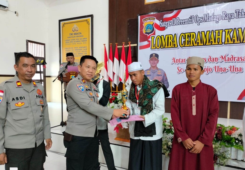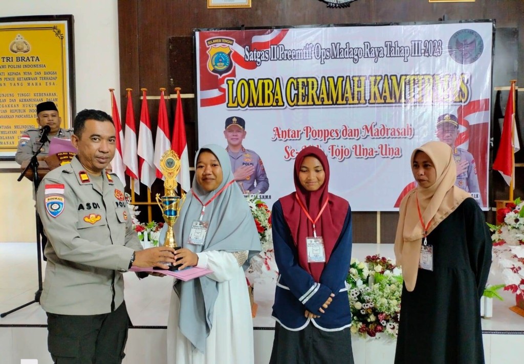 Dalam menciptakan situasi Kamtibmas diwilayah Sulawesi Tengah Khususnya diwilayah kabupaten Touna, Satgas II Preemtif Ops Madago Raya bersama tim Da’i Polri menyelenggarakan Kegiatan Lomba Ceramah Kamtibmas antar Pondok Pesantren dan Madrasah Se Kabupaten Tojo Una-una,bertempat di Aula Endra Dharmalaksana Polres Touna.Minggu (13/8/2023)