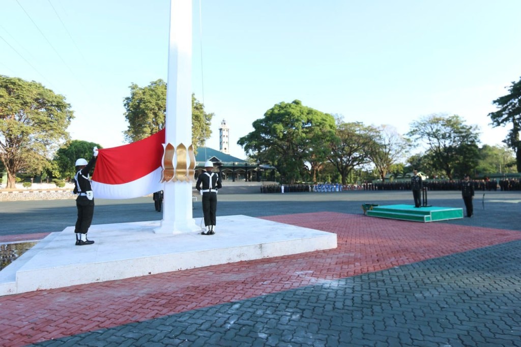Kasdam XIV/Hasanuddin Brigjen TNI M. Syech Ismed, S.E., M.Han., mewakili Pangdam, bertindak sebagai Inspektur Upacara (Irup) pada Upacara Peringatan HUT ke-78 Kemerdekaan RI Tahun 2023, digelar di lapangan M. Yusuf Makodam, Kota Makassar. Kamis (17/08/2023).