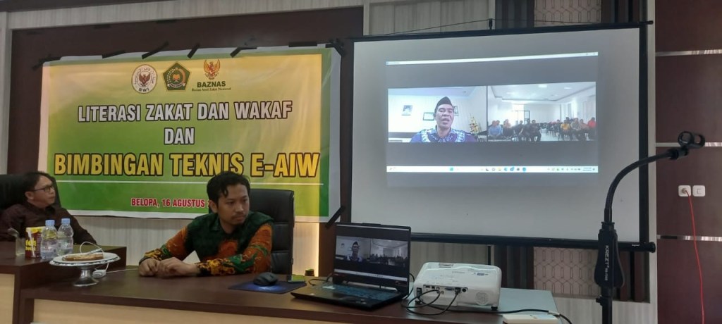Kabid Penaiszawa Kanwil Kemenag Sulsel, H. Abdul Gaffar, memaparkan materi terkait program strategis Direktorat Pemberdayaan Zakat dan Wakaf (Ditzawa) secara daring (melalui zoom) pada kegiatan Literasi Zakat dan Wakaf, yang diselenggarakan Kementerian Agama Kabupaten Luwu, Rabu, 16 Agustus 2023, di aula PLHUT Kemenag Luwu, Jl. Andi Kambo No. 3 Belopa.