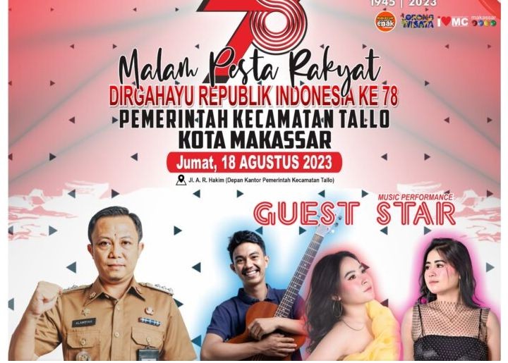 Perayaan Malam Pesta Rakyat dalam rangka memperingati Hari Ulang Tahun Kemerdekaan Republik Indonesia yang ke-78 di Kecamatan Tallo yang di helat malam ini akan benar-benar menghadirkan suatu peristiwa yang dahsyat dan berkesan. Acara ini dihadirkan dengan tujuan utama untuk memeriahkan semangat kemerdekaan dan nasionalisme di kalangan warga Kecamatan Tallo, dan untuk menciptakan momen yang tak terlupakan dalam bentuk perayaan spektakuler. Jum’at malam, 18 Agustus 2023.