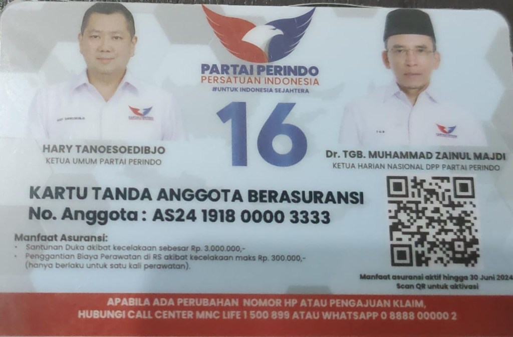 Rahman mengatakan bahwa untuk mengantisipasi terjadinya musibah kematian dan kecelakaan pada Pemilu 2024 sebagaimana yang pernah terjadi pada pemilu 2019 yang lalu, partai Perindo melalui program asuransinya sudah mengantisipasi dengan menyiapkan KTA Asuransi Perindo gratis dengan biaya pertanggungan apabila terjadi klaim untuk yang kecelakaan diberikan dana sebesar Rp. 300.000 dan untuk yang mengalami kematian akan di berikan uang pertanggungan sebesar Rp. 3.000.000 tegas Rahman, selain itu Partai Perindo juga memberikan fasilitas kartu nama tandem dan beberapa fasilitas lain terkait saksi dan metodologi pemenangan partai tutup Rahman Nai.