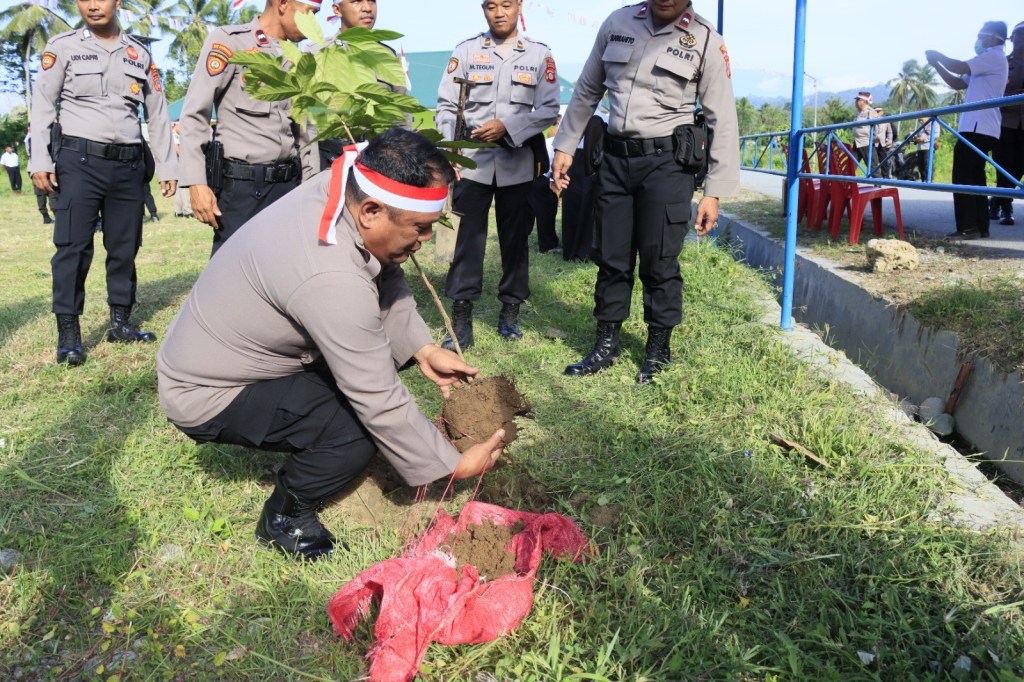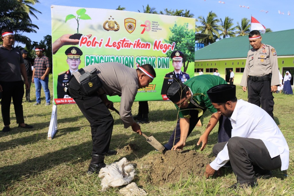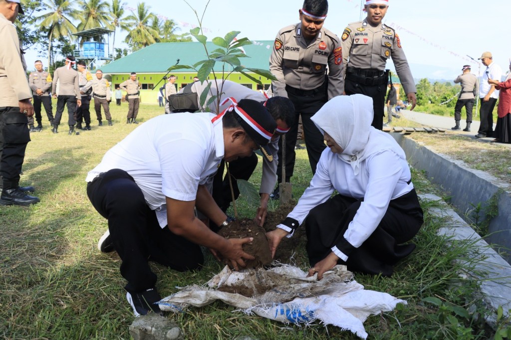 Kegiatan menanam pohon serentak tersebut merupakan bentuk kepedulian terhadap lingkungan dengan tema Polri Lestarikan Negeri Penghijauan Sejak Dini.