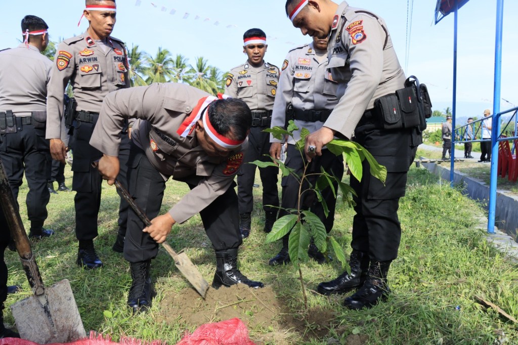 “Dalam penanaman pohon seluruh Polres dan Polsek jajaran melibatkan unsur Forkopimka, tokoh agama, tokoh masyarakat. Kami berharap upaya penghijauan menjadi iktikad baik bersama,” ujar Waka Polres Poso Kompol Basrum.