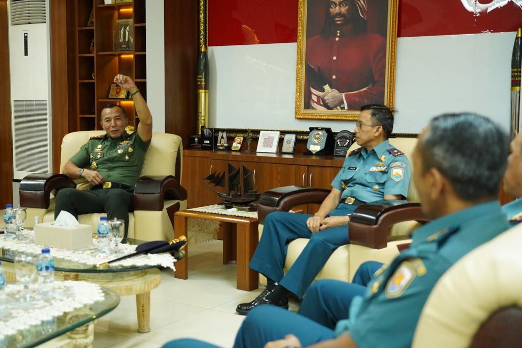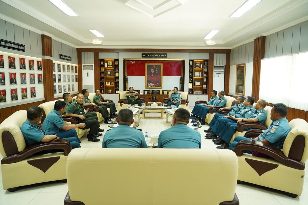 Pangdam XIV/Hasanuddin Mayjen TNI Dr. Totok Imam Santoso, S.I.P., S.Sos., M.Tr (Han)., menerima audiensi Komandan Lantamal (Danlantamal) VI Makassar Laksamana Pertama TNI Ivan Gatot Prijanto, S.E., M.Tr.Opsla., dan Pejabat Utama (PJU) Lantamal VI Makassar, bertempat di ruang tamu Pangdam, Makodam Kota Makassar. Selasa (22/08/2023).