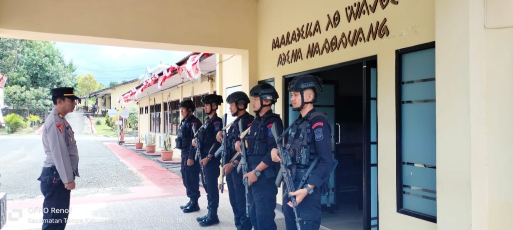 Kamandahan dari Bataliyon C Pelopor Brimob Bone disambut langsung oleh Wakapolres Wajo Kompol H.Muhtar.